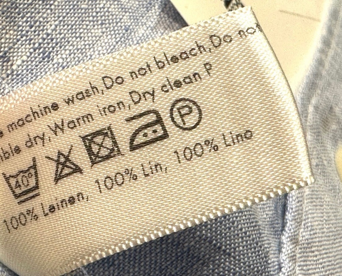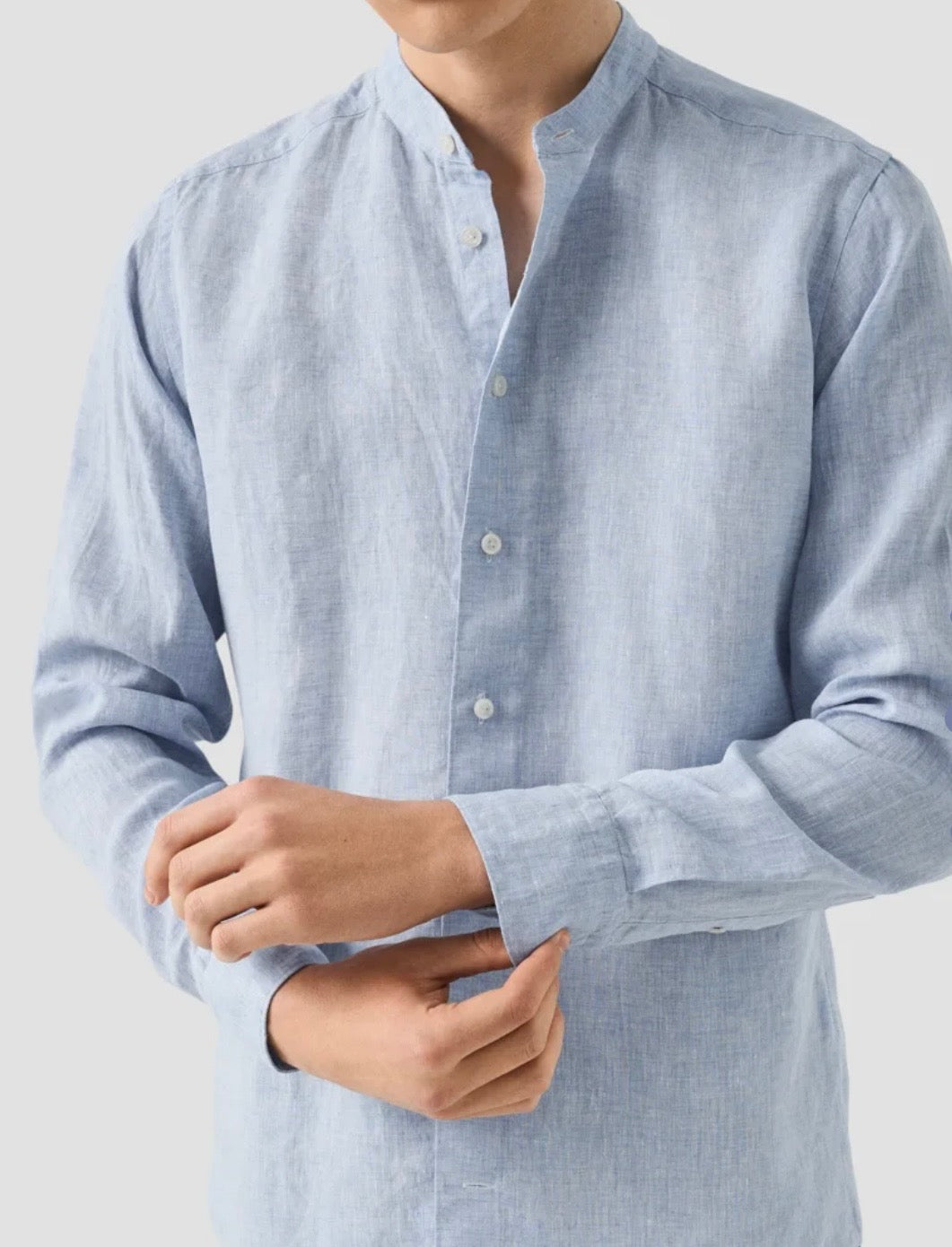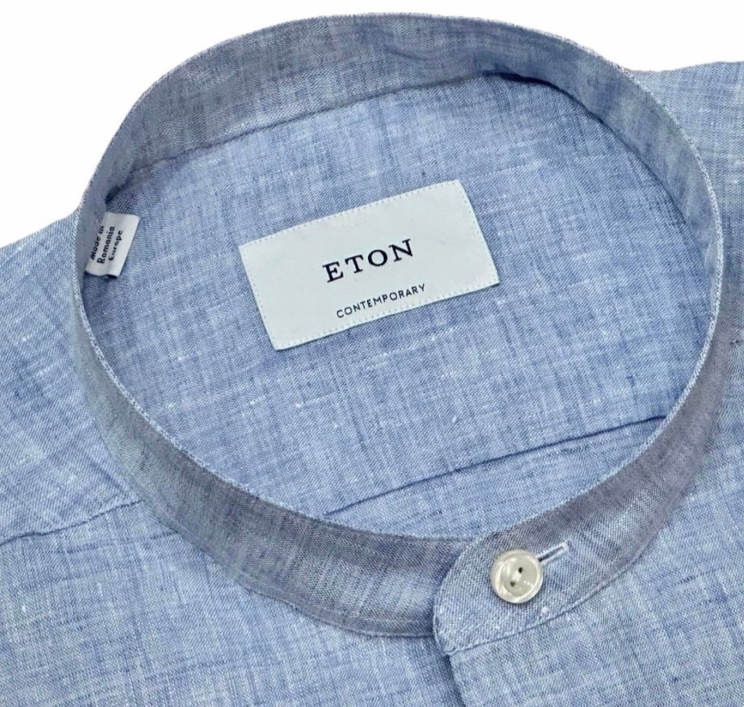 $285 NEW ETON DRESS SHIRT L 16.5 42 LINEN BAND COLLAR CHAMBRAY LIGHT BLUE CONTEMPORARY