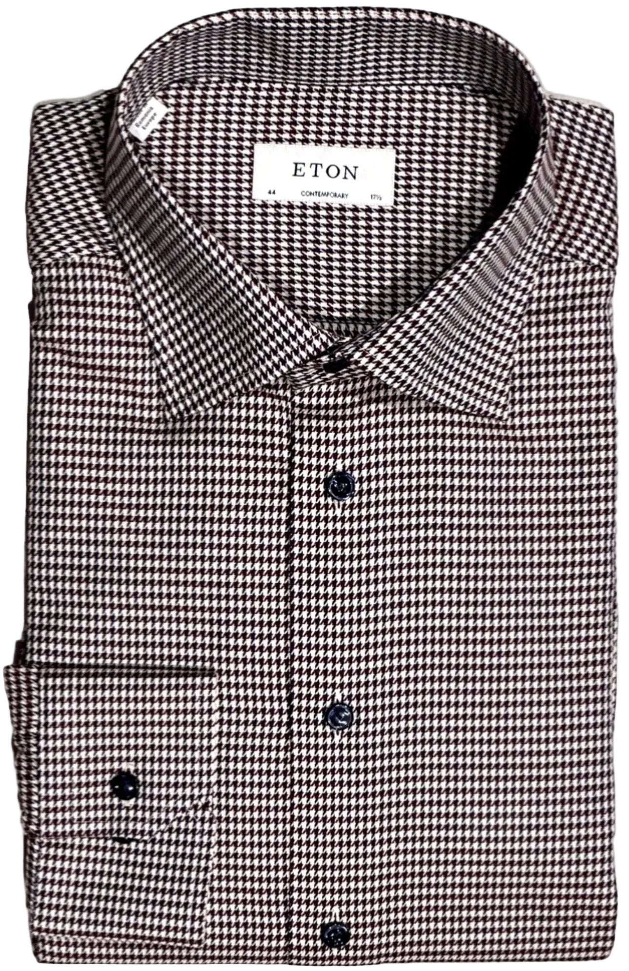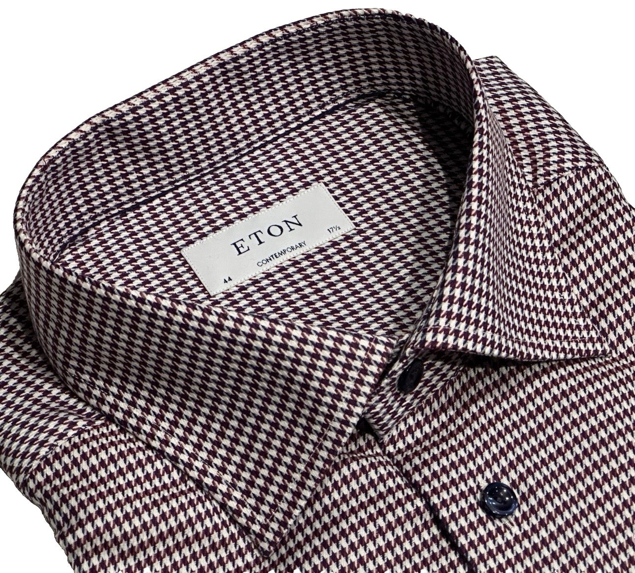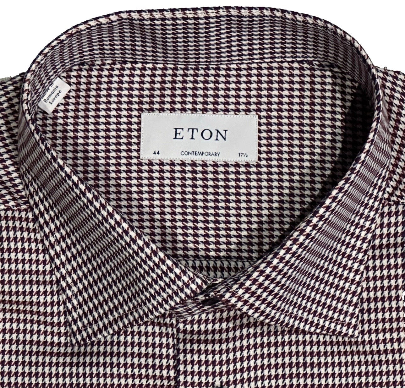 $395 NEW ETON DRESS SHIRT 17.5 44 CONTEMPORARY FIT BURGUNDY HOUNDSTOOTH